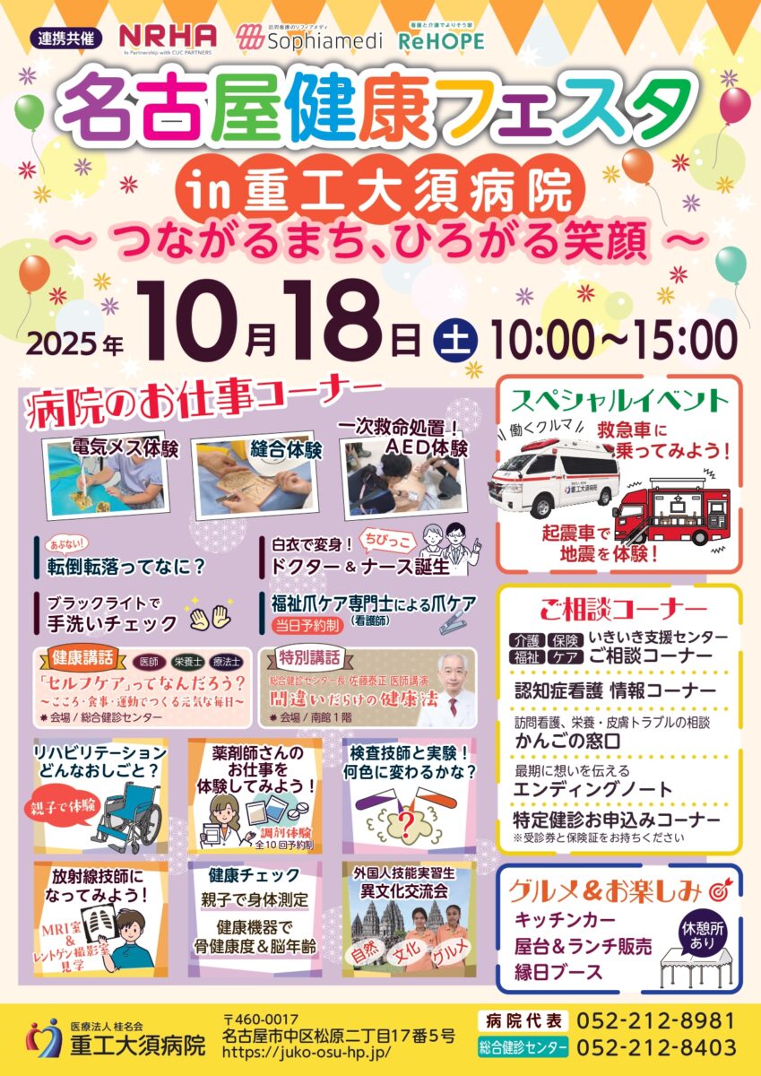 名古屋健康フェスタ~つながるまち、ひろがる笑顔~を当院で開催します。