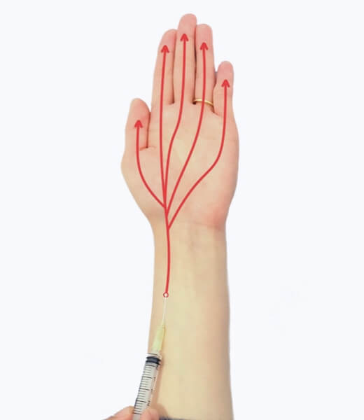当院では、保存的治療で痛みの改善が難しい方に対し、手の外科専門医が診察を行い、必要に応じて「動注治療」をご提案しています。