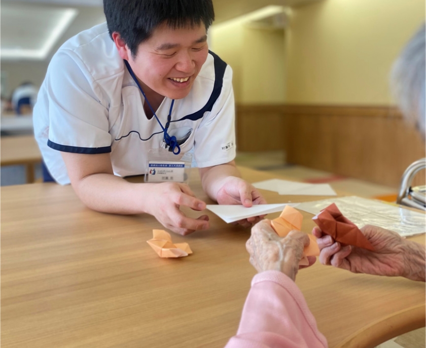 重工大須病院の作業療法士は、評価や訓練を“病室の中”で終わらせません。退院後の生活を具体的に想定しながら、患者さん一人ひとりの背景や価値観に踏み込んだ支援を行います。多職種との距離が近く、カンファレンスや日常のやり取りを通じて意見を出しやすい環境も特徴です。新人でも「どうしたらこの人らしい生活につながるか」を考え、実践できる風土があり、OTとしての視野と引き出しを着実に広げていけます。